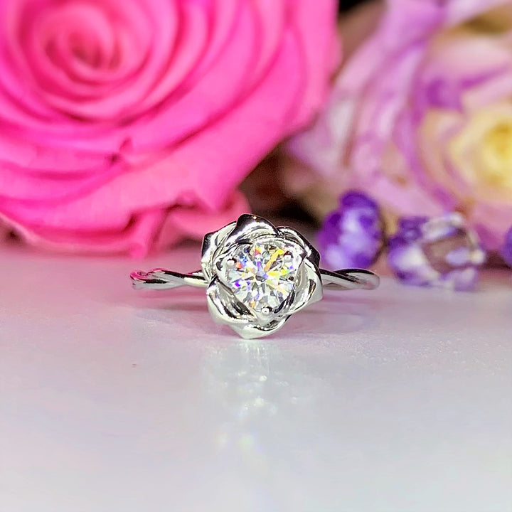 0.35CT 18K White Gold Floral Rose Solitaire Engagement Ring - LGR012 LG668446450
