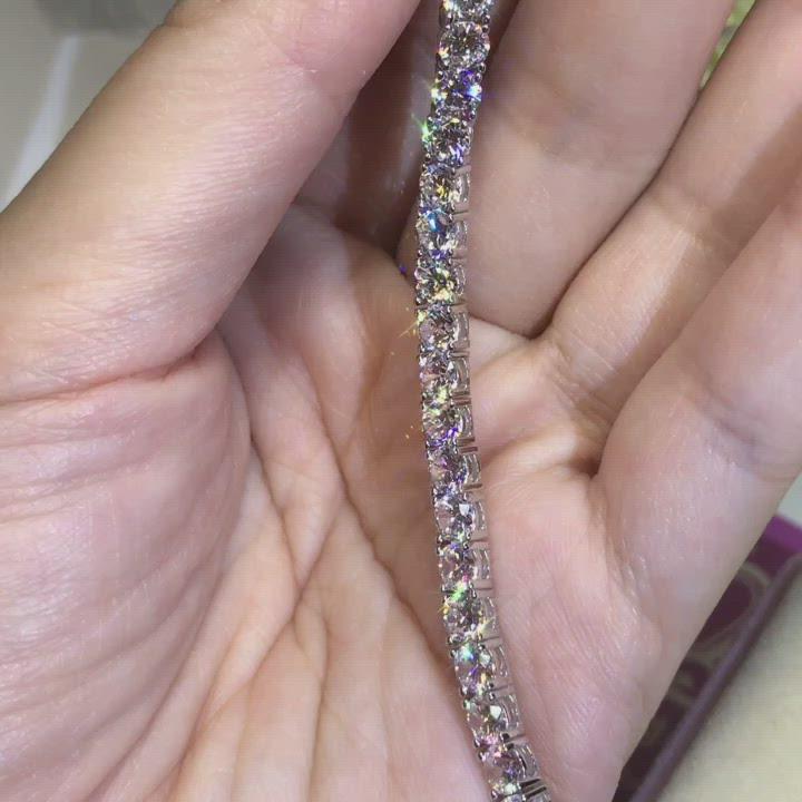 Elevate your style with the B10 Four Prong Round Brilliant Cut Tennis Bracelet from Roselle Jewelry. This stunning bracelet showcases a continuous line of dazzling round brilliant cut diamonds, each securely held in a classic four-prong setting. A symbol of enduring elegance, its brilliant sparkle and timeless design make it a perfect accessory for any occasion, adding a touch of luxury to your look.