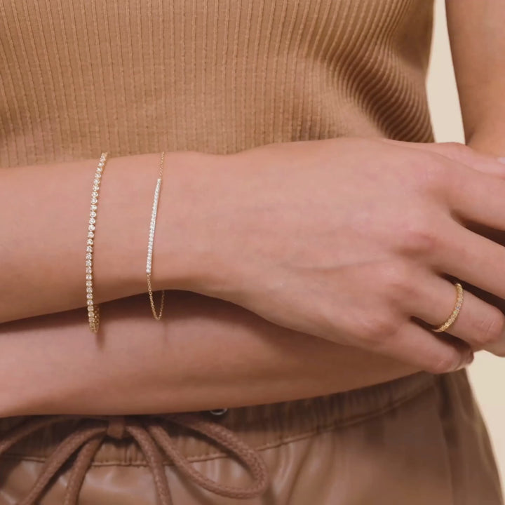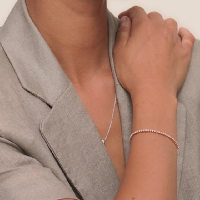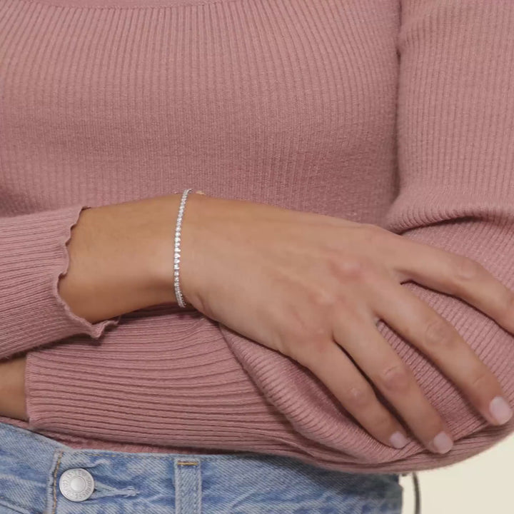 This ravishing tennis bracelet gleams with 1 carat of breathtaking diamonds, set into gleaming white gold links. As a Brilliant Pick, this gorgeous design radiates the highest in fashion and elegance, adored by Roselle Jewelry creators and customers alike.