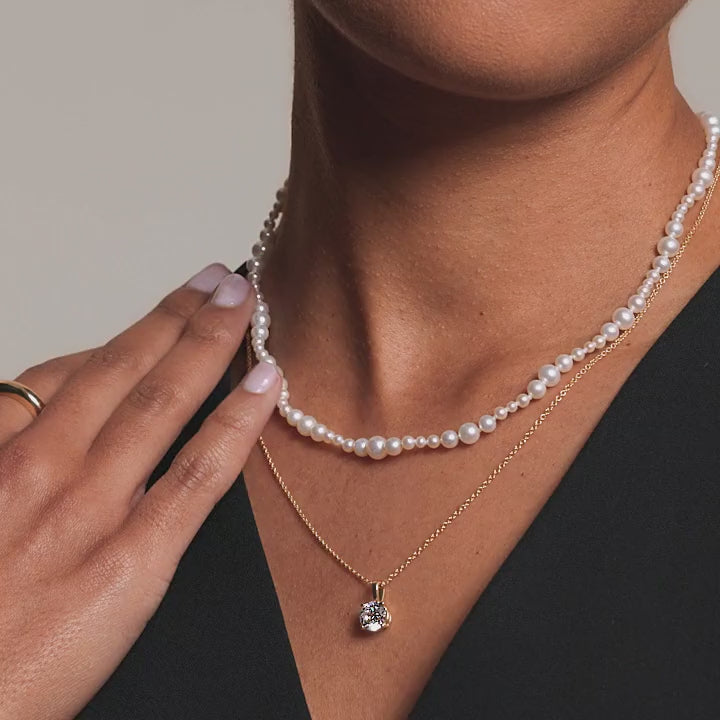 Experience effortless elegance with the LC55 Floating Solitaire Pendant Setting from Roselle Jewelry. This minimalist design creates the stunning illusion that your chosen diamond floats gracefully along the delicate chain, capturing and reflecting light from every angle. The innovative floating setting maximizes your diamond's brilliance while maintaining a clean, sophisticated aesthetic that complements any style. Perfect for everyday wear or special occasions, this timeless pendant setting showcases your diamond's natural beauty with understated luxury.