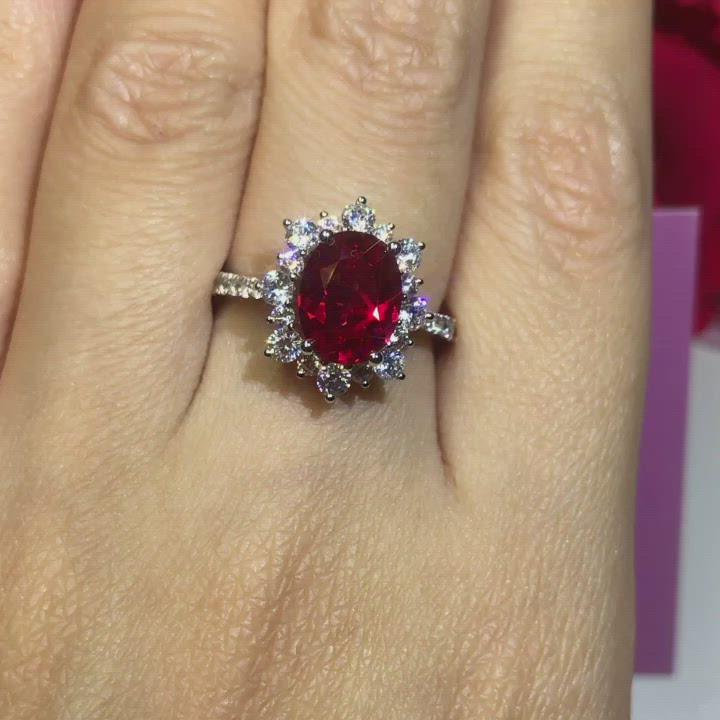 Lab Grown Ruby Oval Halo Engagement Rings - OR1