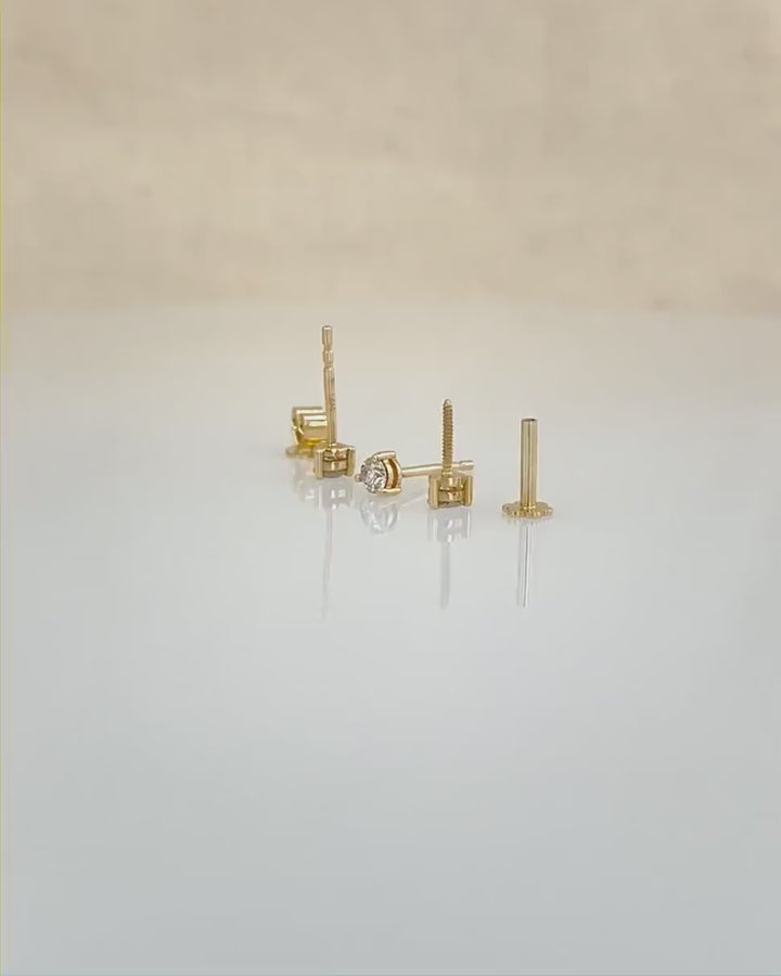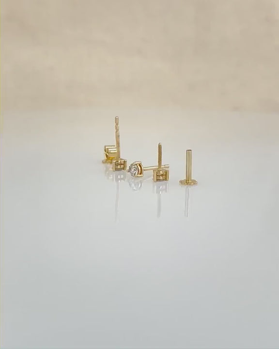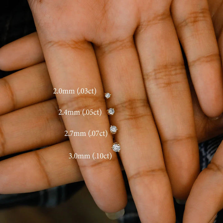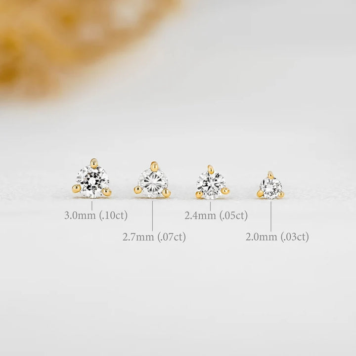 Low Profile Small Three Prong Minimalist Stud Earrings (One Pair) - SE017