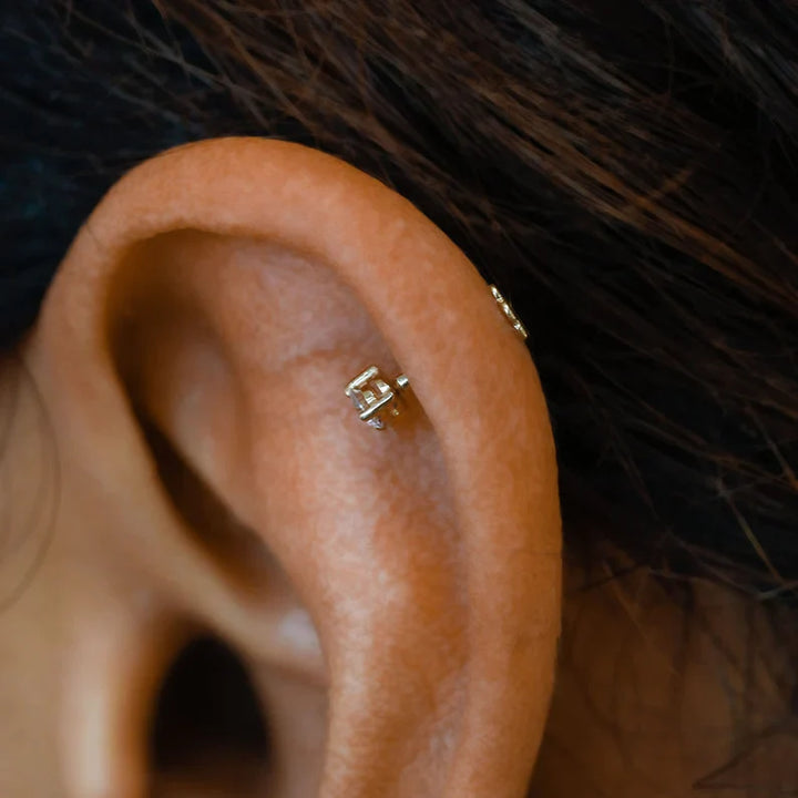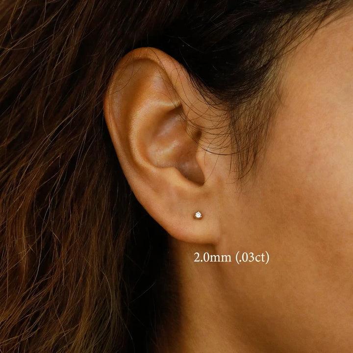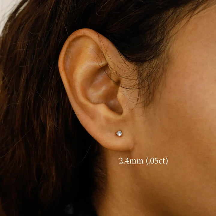 Single Low Profile Small Three Prong Minimalist Stud Earrings (Half Pair) - SE017H