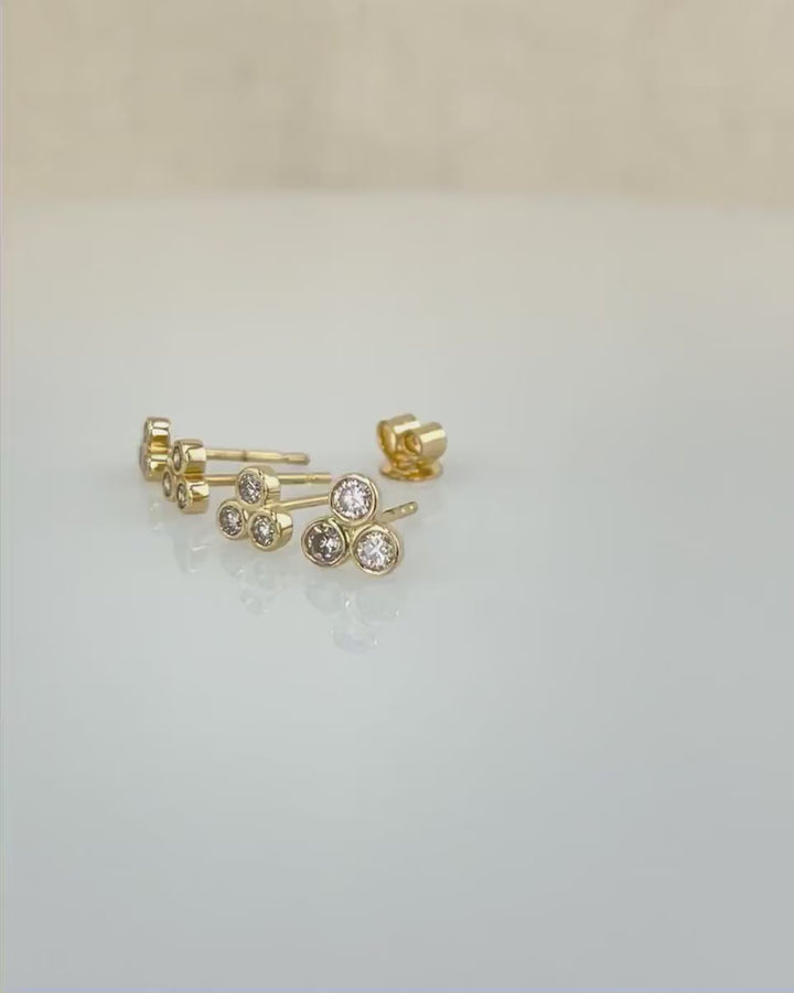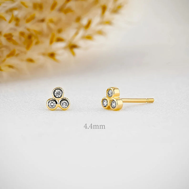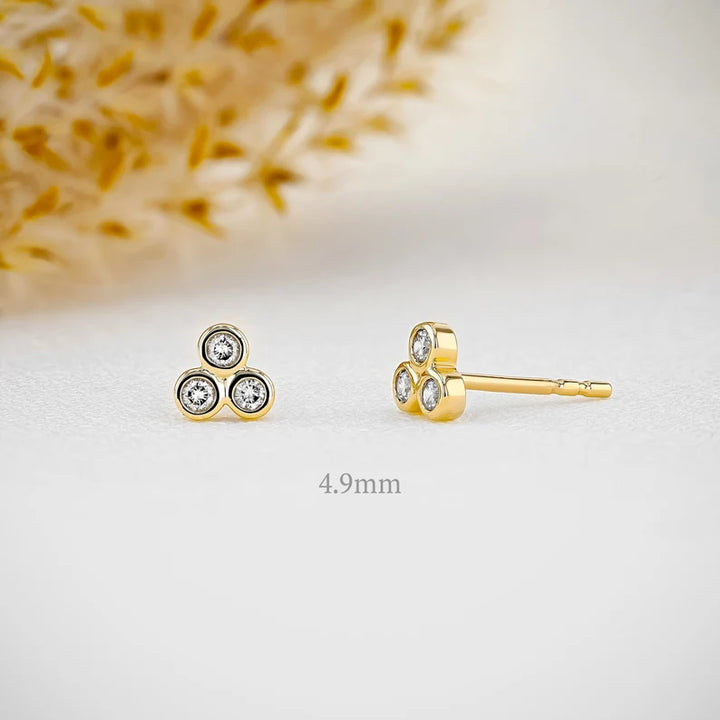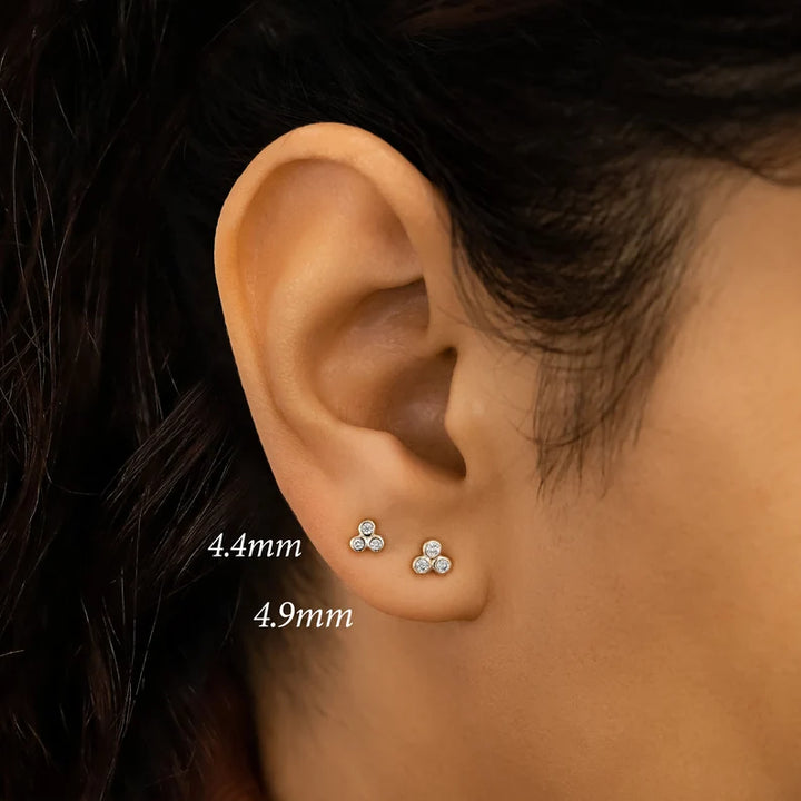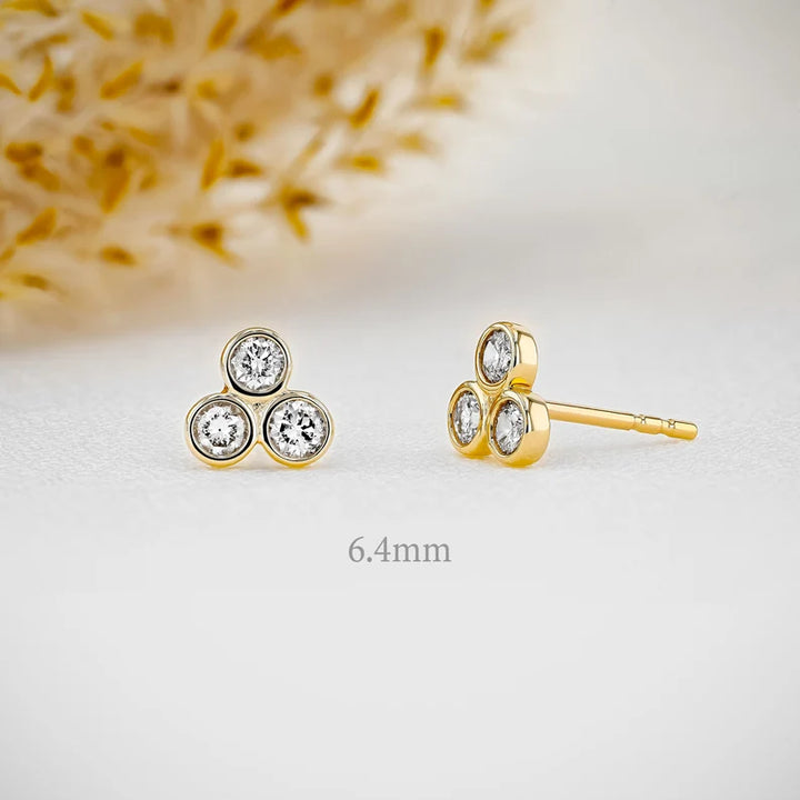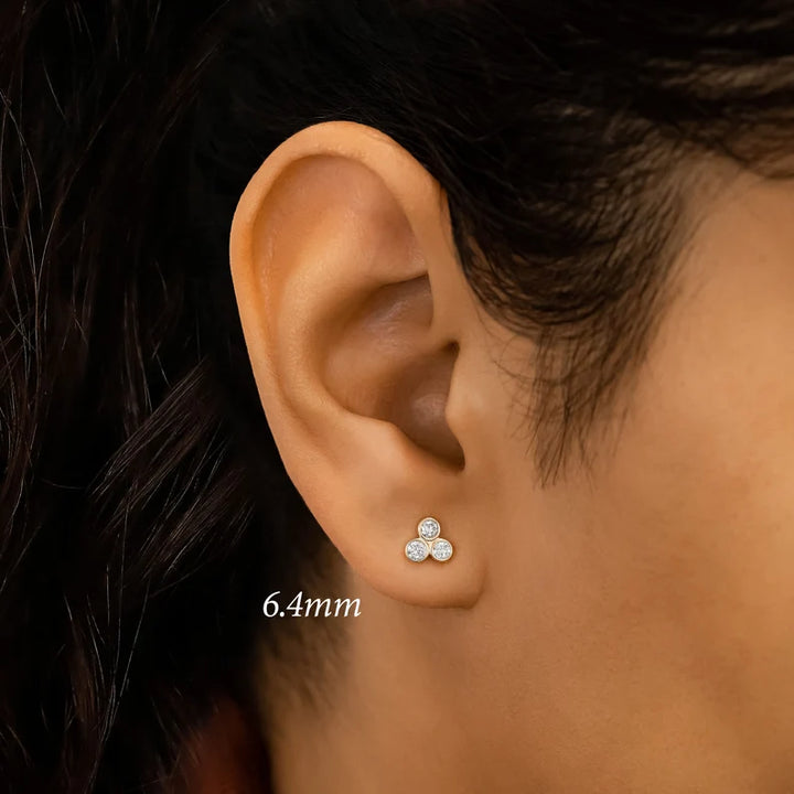 3 Stone Trio Bezel Set Stud Earrings (One Pair) - SE018