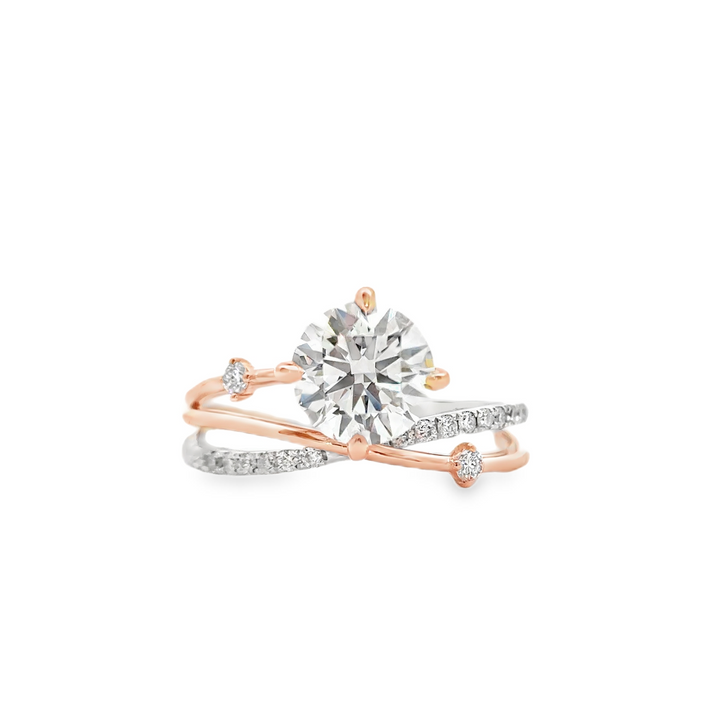 LGR059 - Instock Twist Two Tone Gold Side Stone Diamond Engagement Ring With Round 1.17CT LG622499626